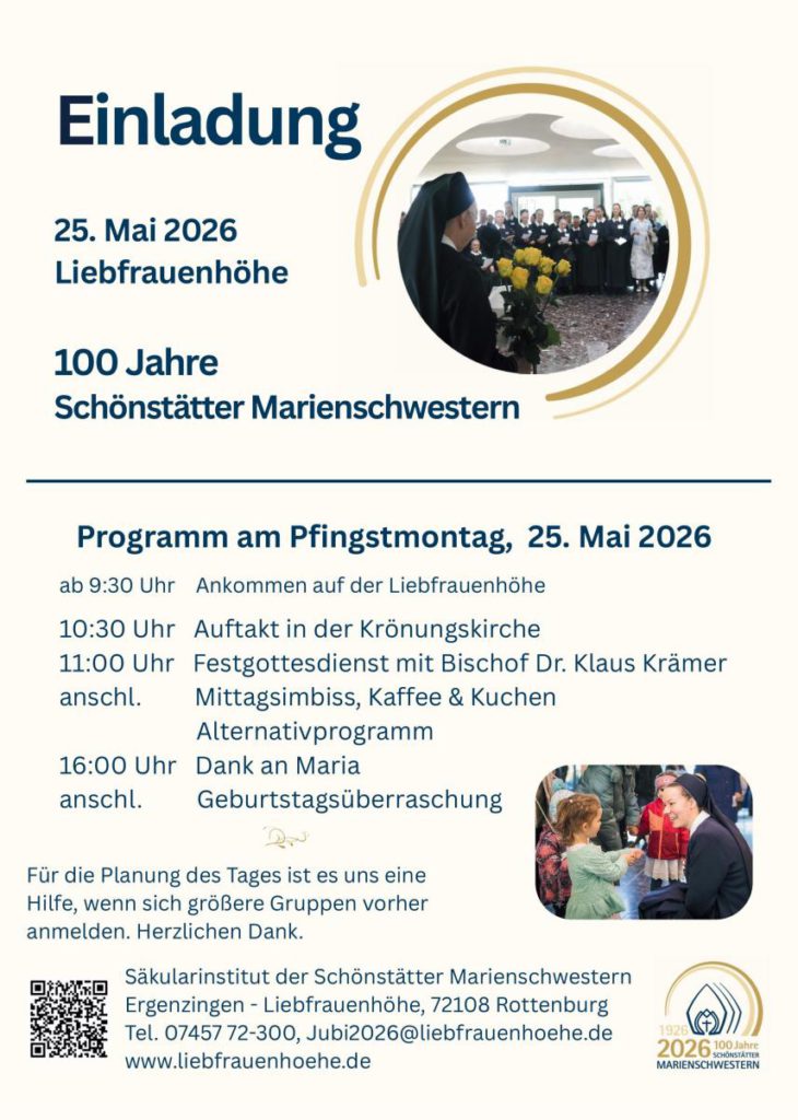 Schönstattské hnutie, Jubileum 100.rokov, slávnosť 25.05.2026 v Schönstatt-Zentrum Liebfauenhöhe
